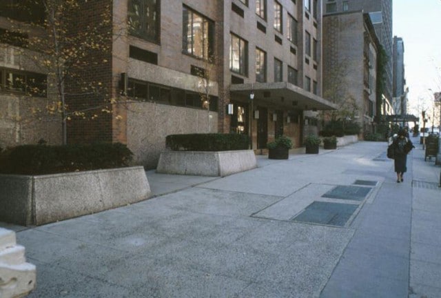 The plaza in front of this combination residential/community facility building on the south side of East 72nd Street between Second and Third Avenues is...continued.